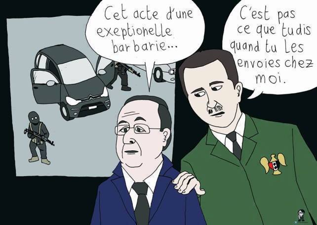 Condamnation de tous les terroristes, de tous leurs alliés, de tous leurs soutiens, en particulier les gouvernements, contre lesquels une justice « impitoyable » devrait effectivement être exercée (sans oublier leurs médias apologistes) : USA, UK, Israël, France, Arabie Saoudite, Turquie, Qatar… Rappelons que Laurent Fabius déclarait à propos d’Al-Nosra, branche d’Al-Qaïda, qu’ils « font du bon boulot en Syrie », et que François Hollande a reconnu armer les « égorgeurs modérés » de l’opposition anti-Assad. Ces attaques sont la conséquence directe, prévisible et prévue de longue date de leur politique irresponsable, criminelle et apatride qui a suivi les pas de Nicolas Sarkozy en Libye.