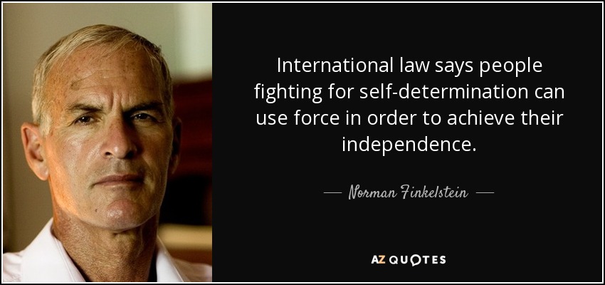 Selon le droit international, un peuple luttant pour son auto-détermination peut utiliser la force pour obtenir son indépendance. Norman Finkelstein