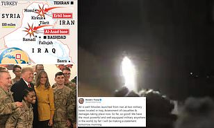 « Tout va bien ! Des missiles ont été lancés depuis l’Iran sur deux bases militaires situées en Irak. Évaluation des pertes et dommages en cours. Jusqu’ici tout va bien ! Nous avons de loin l’armée la plus puissante et la mieux équipée du monde! Je ferai une déclaration demain matin. »