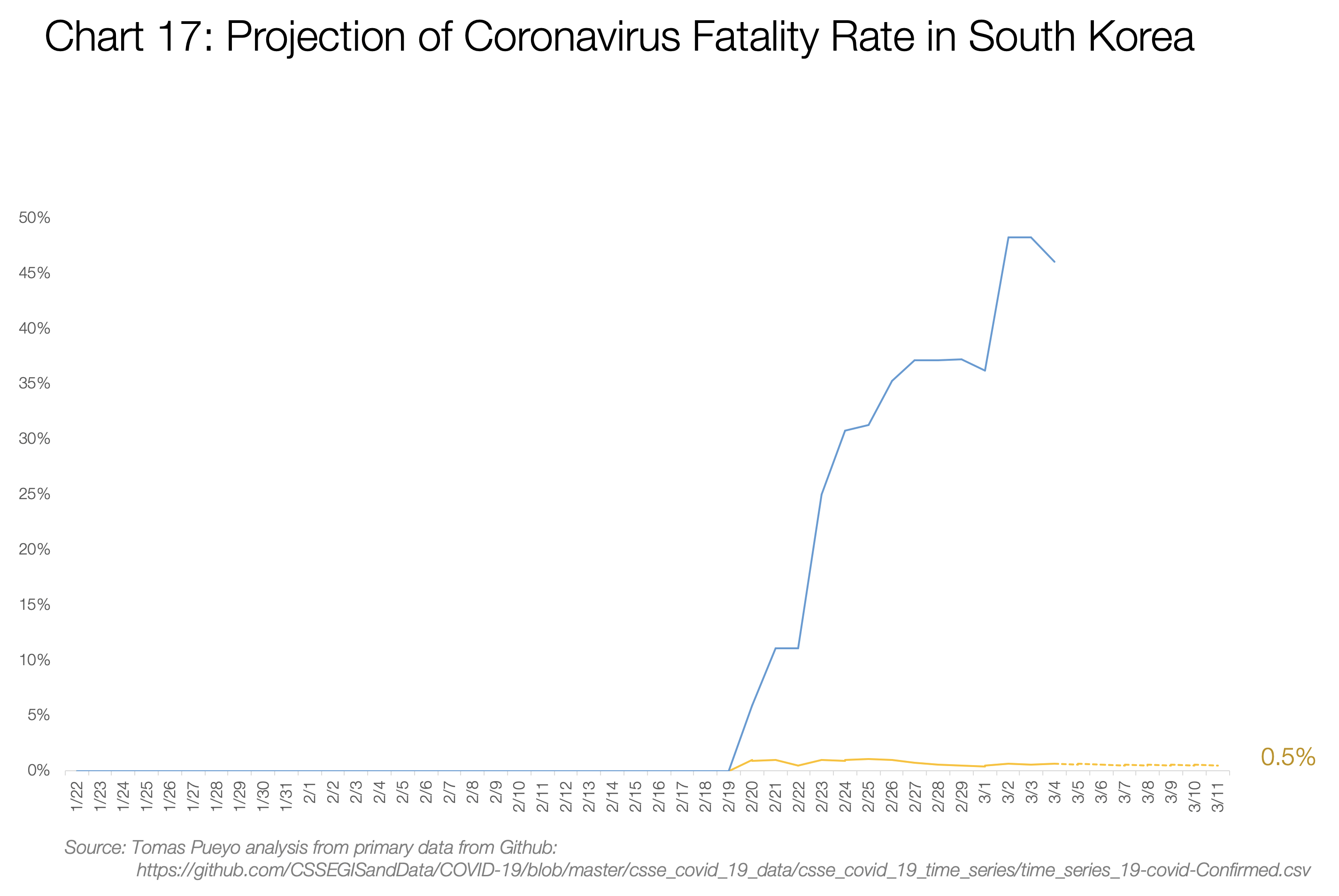 C’est ce que vous voyez dans les données. Le taux de mortalité en Chine se situe désormais entre 3,6% et 6,1%. Si vous projetez cela à l’avenir, il semble qu’il converge vers ~3,8% / -4%. C’est le double de l’estimation actuelle et 30 fois pire que la grippe.