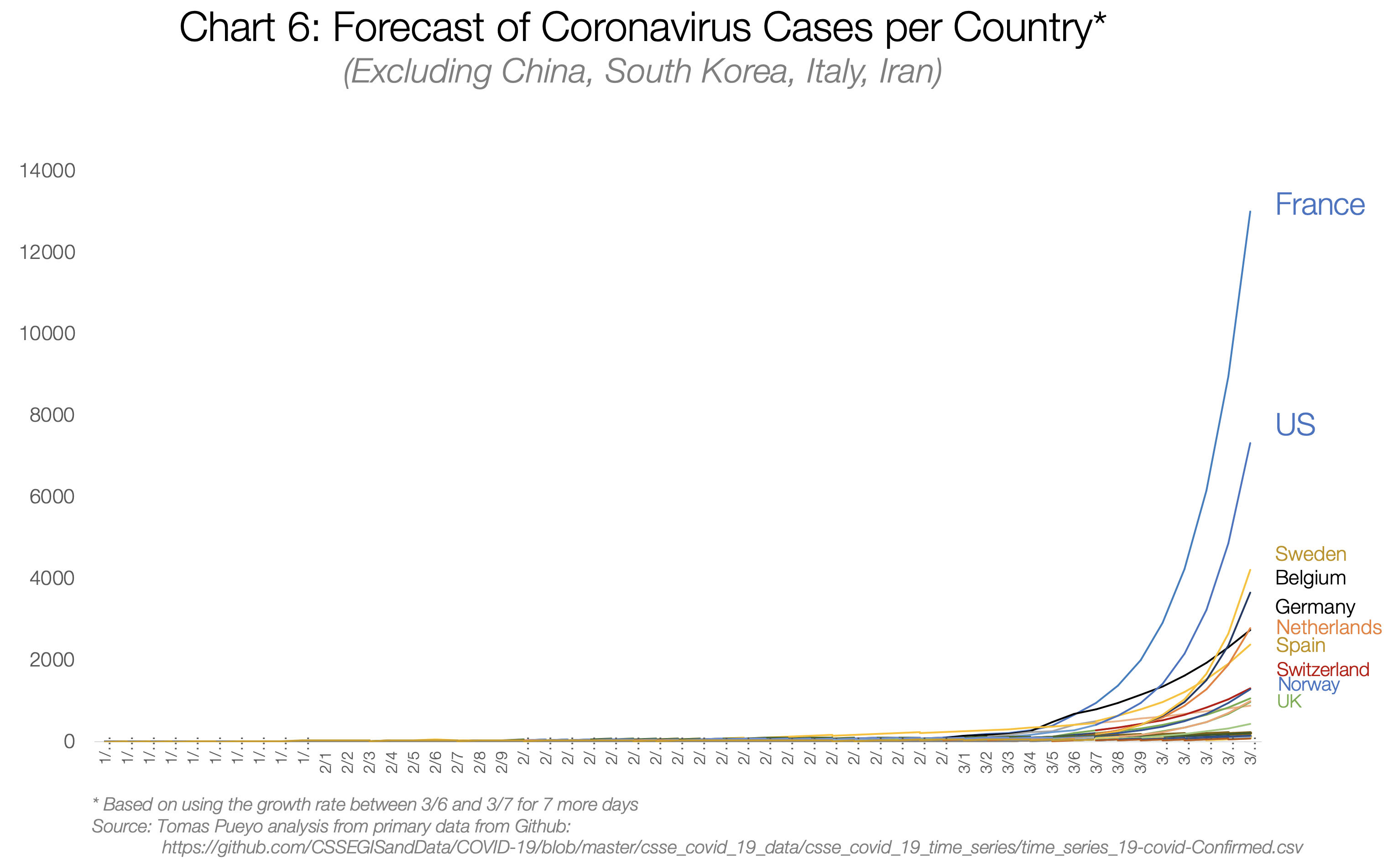 Vous avez déjà vu la croissance dans les pays occidentaux et à quoi ressemblent les mauvaises prévisions d’une semaine seulement. Imaginez maintenant que le confinement ne se produit pas comme à Wuhan ou dans d’autres pays de l’Extrême-Orient, et vous obtenez une épidémie colossale.