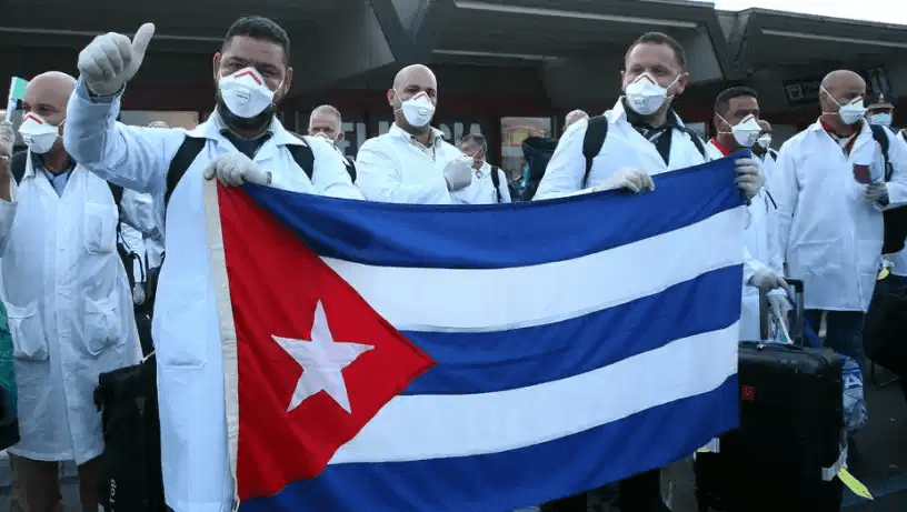 #Cuba n’offre ses missions médicales internationales aux personnes atteintes de #COVID19 que pour compenser l’argent qu’elle a perdu lorsque les pays ont cessé de participer au programme abusif. Les pays hôtes sollicitant l’aide de Cuba pour #COVID19 devraient examiner les accords et mettre fin aux abus du droit du travail. [Tweet du Bureau américain de la Démocratie, des Droits de l’Homme et du Travail]
