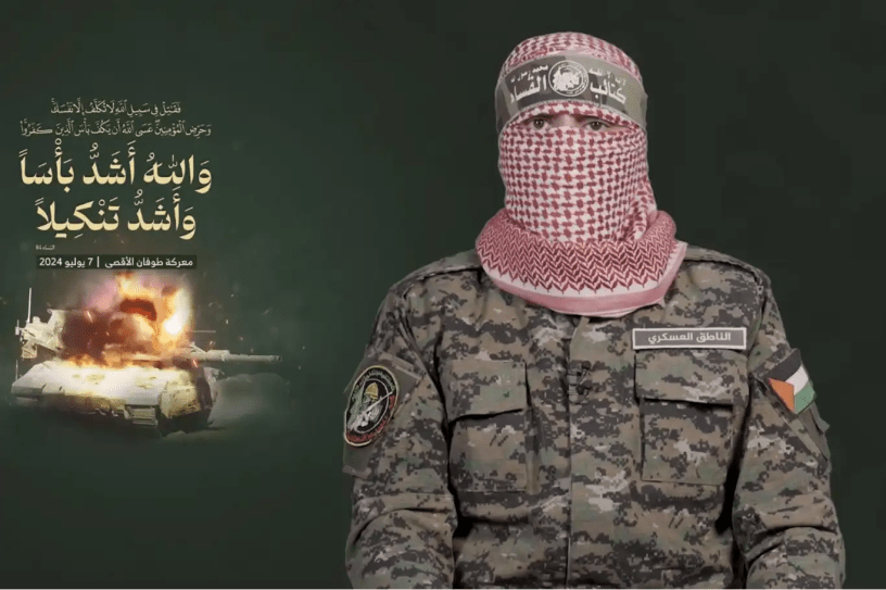 Discours d’Abu Obeida, porte-parole des Brigades du Martyr Izz El-Din Al-Qassam, branche armée du Hamas, le 7 juillet 2024, après 9 mois de guerre génocidaire israélienne à Gaza.