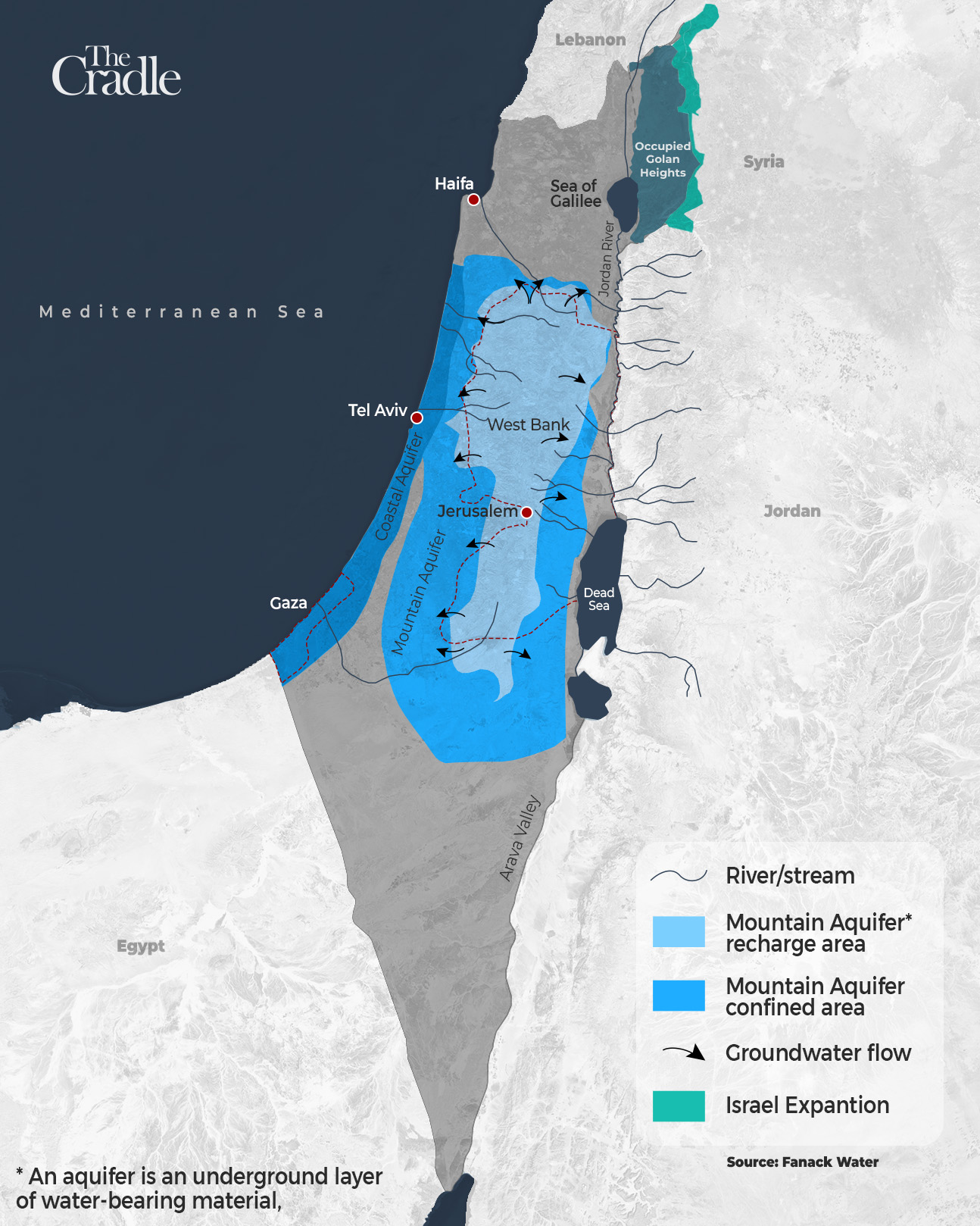 Le climat aride de la Palestine et ses ressources naturelles en eau limitées ont depuis longtemps façonné la politique israélienne de gestion de l’eau, d’autant plus que les déserts couvrent plus de la moitié du territoire. Les principales sources d’eau douce du pays sont la mer de Galilée, le Jourdain et les aquifères côtiers et montagneux.